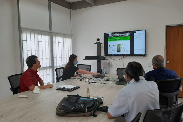 Reunión con la presencia del Director ejecutivo de Fedearroz seccional Ibague, el Decano de la facultad de Agronomia de la Universidad del Tolima, el enlace de la región con la embajada China en Colombia y el Director ejecutivo de ASOCENTRO del Tolima; conectados virtualmente en Bogotá el Jefe de proyectos de Fedearroz y en Guangzhou…